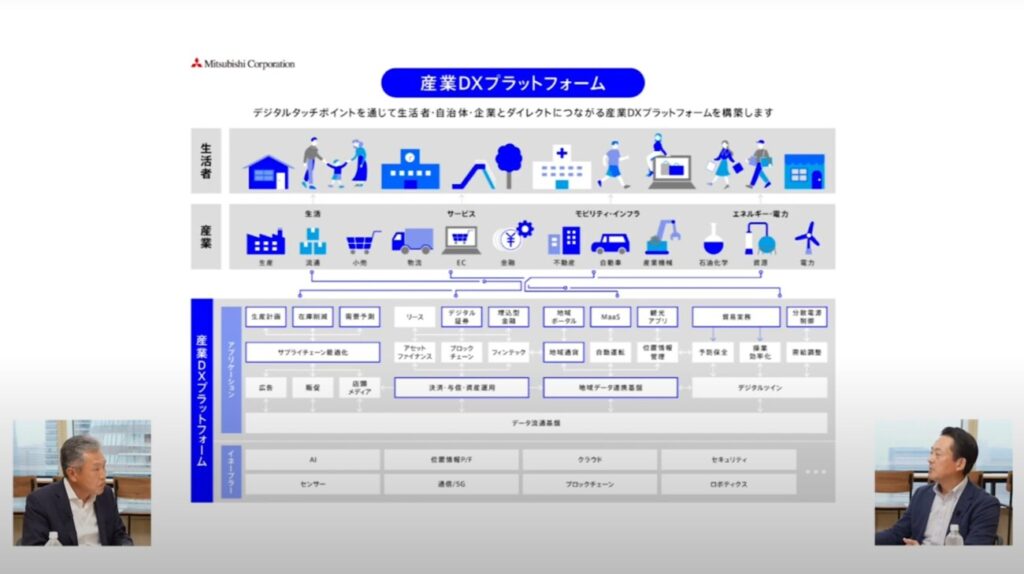 三菱商事のDX戦略は、「個別企業の課題解決」ではなく「社会全体の構造改革」をテーマとするプラットフォーム型のアプローチが特徴です。
